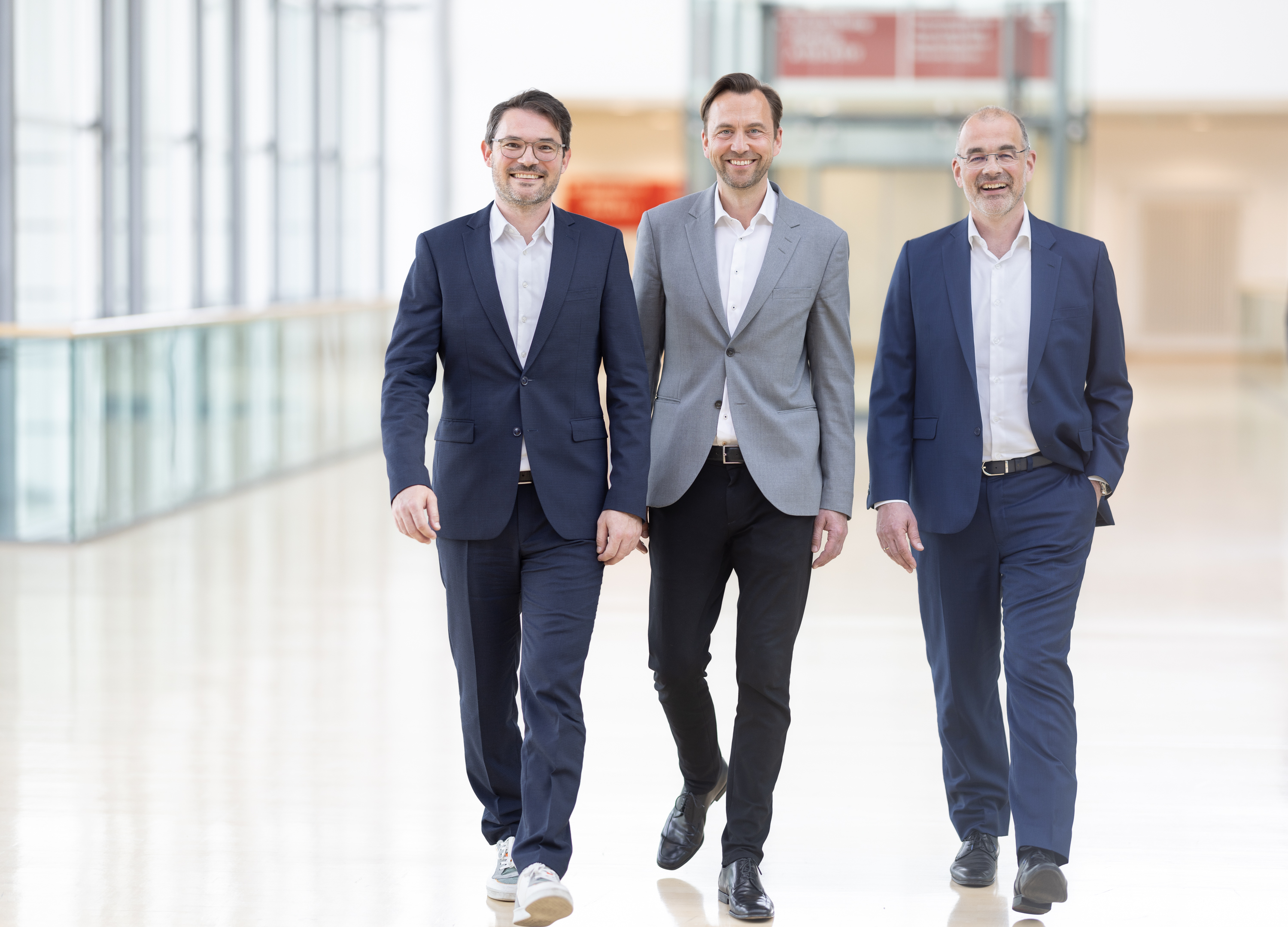 Neue Mitglieder im Vorstand der BVL sind neben Dr. Jörn Fontius (CEO Beumer Maschinenfabrik) (links), Simon Motter (Vorsitzender der Geschäftsführung Volkswagen Konzernlogistik) (Mitte) und Jens Drewes (President Kühne + Nagel) (rechts) auch Kai Althoff (CEO 4flow), Ilse Henne (CTO thyssenkrupp Materials Services) und Dr. Kerstin Höfle (VP R&D and Product Management Supply Chain Automation Körber Supply Chain).